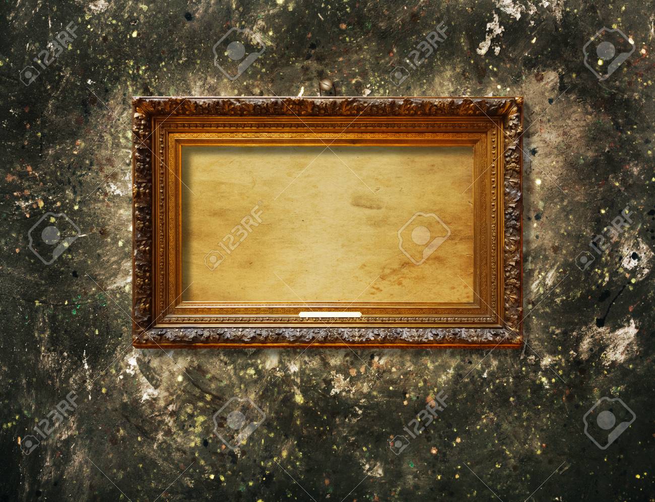 Old Vintage Gold Ornate Frame For Picture On Grunge Stone Wall