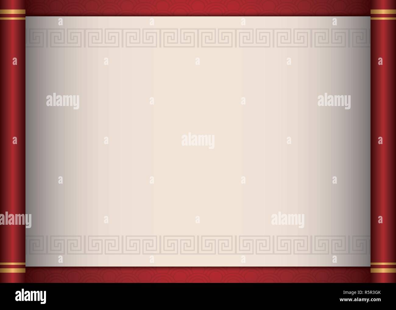 Retro Traditional Chinese Style Red Scroll Paper Template Spiral