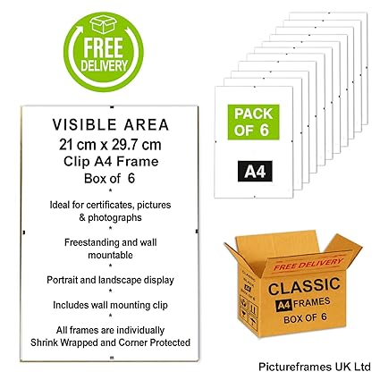Box Of 6 A4 Perspex Clip Frames Certificate Frame Wall Hanging