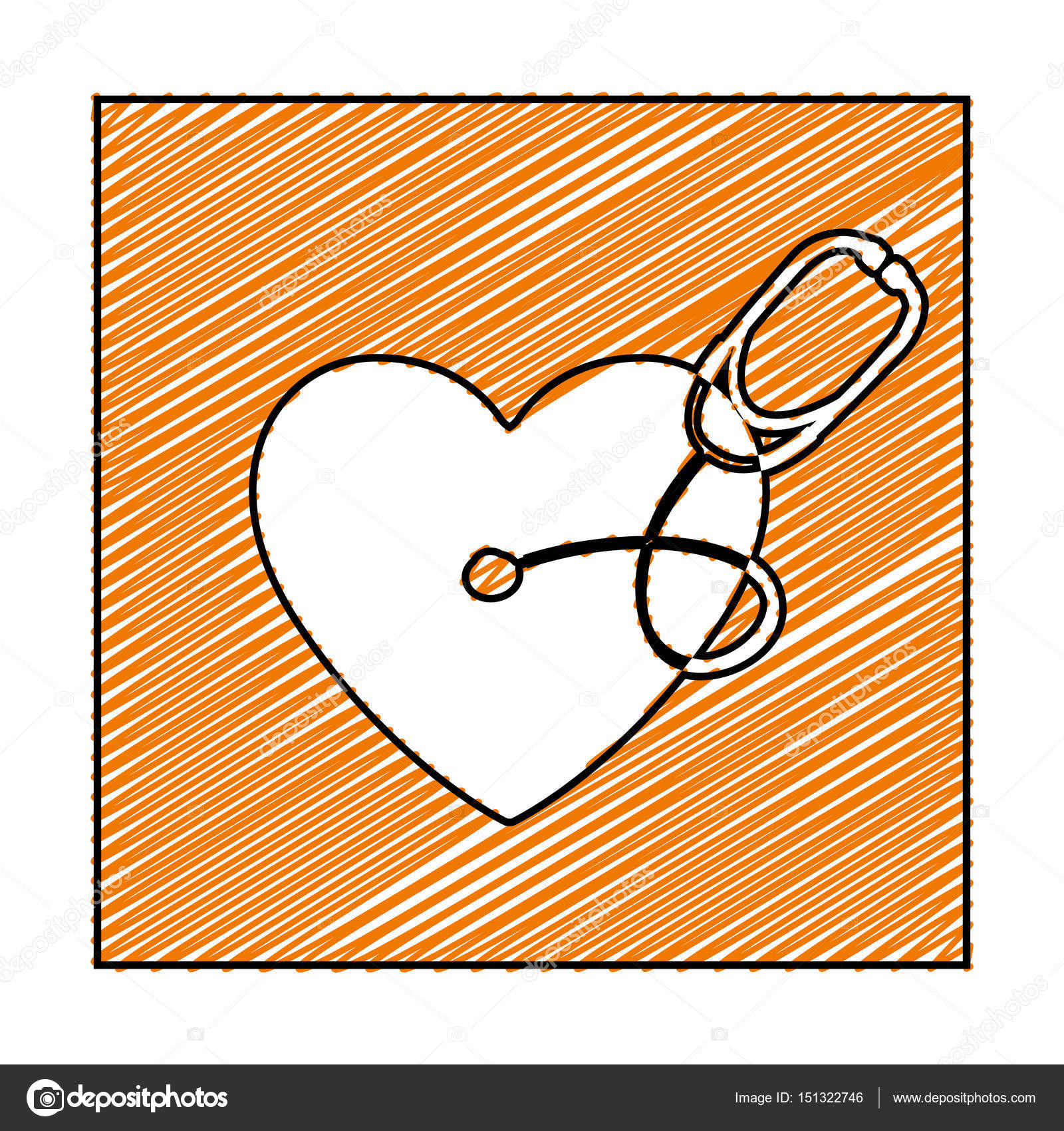 Stethoscope Pencil Sketch Color Pencil Drawing Square Frame With