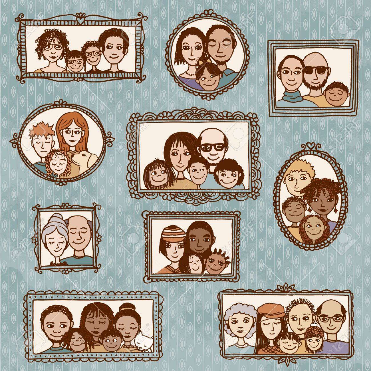 Cute Hand Drawn Picture Frames With Family Portraits Royalty Free