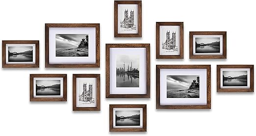 Ray chow carbonized black rustic brown gallery wall picture frames set kit 23 frames solid wood glass window made to display 8x10 5x7 4x6 pictures without mat or 5x7 4x6 4x6 pictures with mat.